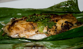 Suit une copieuse dorade dans sa magnifique fleur de bananier et enfin nous terminons avec un filet de veau parfumé à la banane et au cumin mais dont c’est le riz d’accompagnement qui me surprend incroyablement par son mélange de parfums cristallin.
