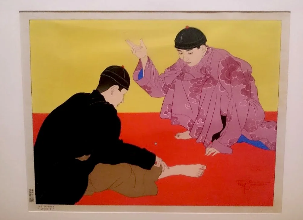 Je suis sensible depuis toujours aux grands maîtres japonais de l'estampe (voir ici par exemple : http://delphinequeme.blogspot.fr/2008/06/hokusai-au-muse-guimet.html ) mais je ne savais pas qu'il y avait un maître français de l'estampe. Il a vécu quasiment toute sa vie au Japon, soit, mais j'avoue n'avoir découvert que maintenant cet artiste absolument extraordinaire (j'avoue donc être passée complètement à côté des expositions qui lui ont été consacrées ces dernières années, notamment au quai Branly et à la BNF).